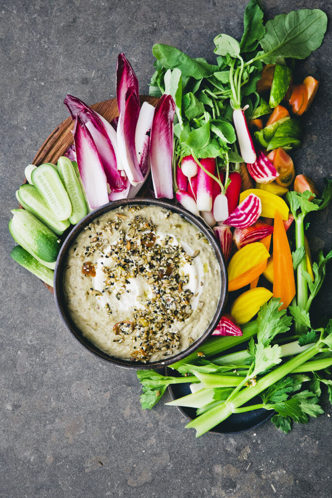 Дип из обожженных баклажанов с ароматным хрустом — Green Kitchen Stories