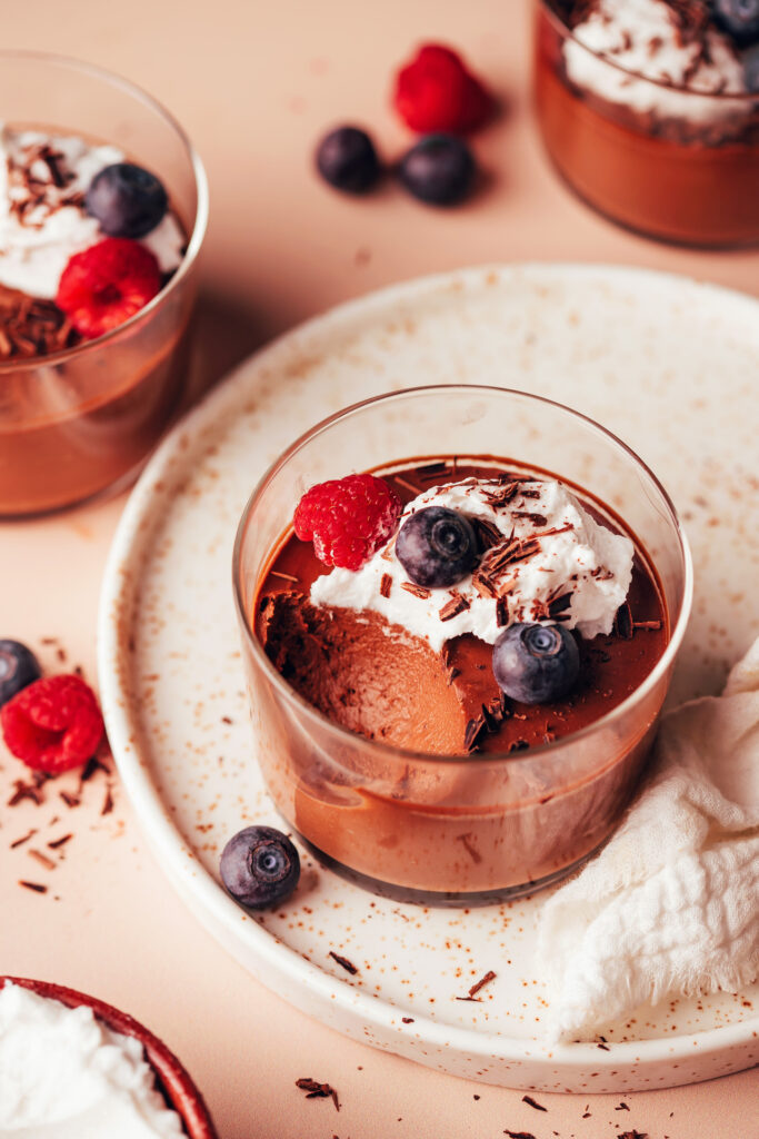 Это сытный, но более полезный десерт, богатый железом, а также белком и клетчаткой! Эти горшки радости можно приготовить заранее, чтобы наслаждаться ими в течение недели или всякий раз, когда возникает тяга к шоколаду. Они также ВОСХИТИТЕЛЬНЫ, что делает их идеальными для стильных званых ужинов, Дня матери и не только!