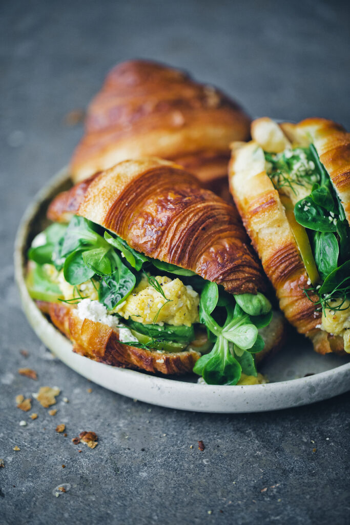 Круассаны — это непревзойденная роскошь для завтрака, которой мы иногда наслаждаемся по выходным среди других фаворитов, таких как пудинги с чиа, йогурты, бутерброды с ржаным хлебом и банановые блины. Маслянистый, слоеный и хрустящий. Поблизости есть несколько хороших пекарен, поэтому мы уже много лет не делаем круассаны. Но если вы хотите добавить свою изюминку, вы можете добавить к ним пикантную начинку. Здесь мы использовали сливочные яйца, острый лабне и много зелени, вдохновленные круассанами, которые мы ели в кафе в Австралии, Кейптауне, Лос-Анджелесе.